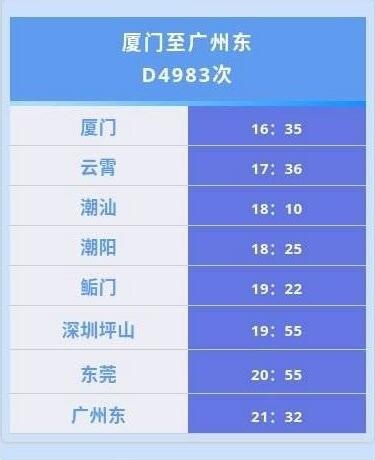广铁集团广州东站消息,自2019年12月5日起至12月16日止,广州东至厦门新增一趟动车,市民往返广州与厦门更加方便。