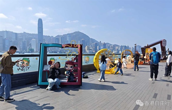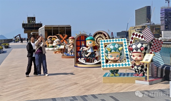而原平台花园则化身MOLLY主题「游乐园」,吸引了不少市民游客前来与可爱的MOLLY们打卡留念。花园入口处矗立着经典的首代造型,内左右两侧设有数十款周年纪念版造型雕像;花园尽头特设「相框」,观众可与MOLLY及维港海景共同合影。