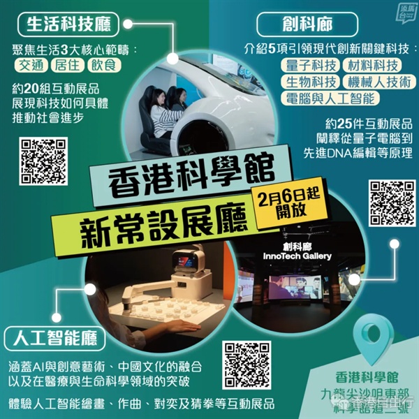 香港科学馆2月6日起推出三个新常设展厅——「生活科技厅」、「创科廊」及「人工智能厅」,分别探索科技如何塑造日常生活,介绍五大引领现代创新的关键科技,以及人工智能的原理与应用。
