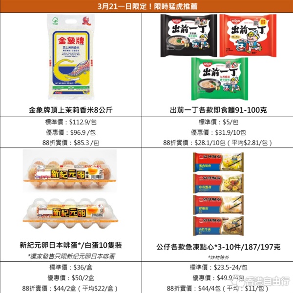 3月20日至26日期间,任选5款精选碗麵还能享额外77折,可与3月21日门市买满$168「全场88折」快闪优惠同步使用,实行折上再折!优惠期内货品种类包罗万有,把握时机来扫货吧!