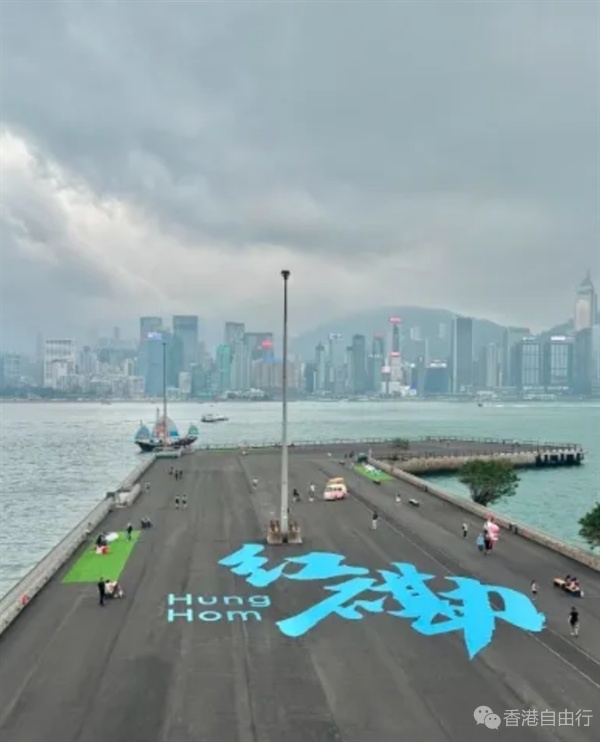 场地内还印有巨型“红磡” 二字打卡点,蓝色大字搭配无敌海景超出片;同时设有观景台、儿童游乐区及各类打卡装置,兼顾大人休闲与小朋友玩乐。