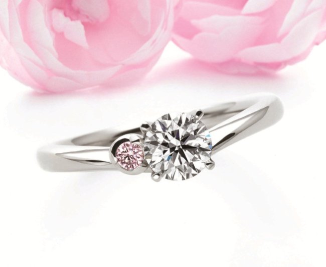 名為BABYROSE的订婚钻戒,设计概念想呈现出成熟可爱的品味,在中央主钻旁镶嵌一粒甜美粉红配钻,感觉就像玫瑰花般可爱。