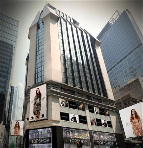 记者了解到,Topshop香港旗舰店位于中环皇后大道中泛海大厦,楼高两层,面积约1115平方米,一楼销售服装,二楼销售配件和化妆品,除此之外一楼还有一个休息室及VIP私人预约购物服务专用间。Topshop香港店临近H&M、Gap、Coach 和Louis Vuitton 等品牌中环旗舰店。