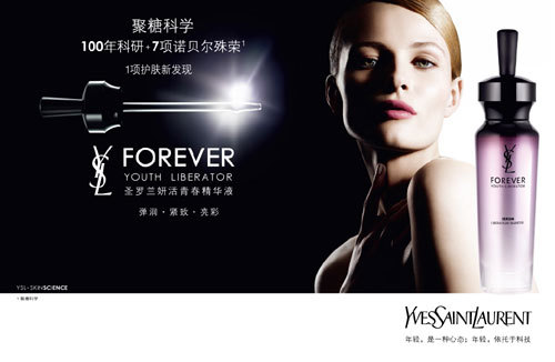 YSL圣罗兰一直以来坚持颠覆传统,支持变革突破。在加入欧莱雅集团后,它以最新科技横扫护肤品市场:“年轻是一种心态,年轻依托科技而存在”。