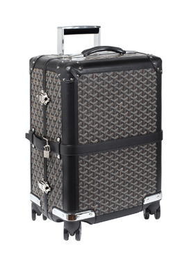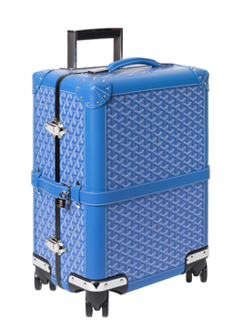 Goyard Bourget旅行箱制作技艺精湛、特色鲜明,以聚碳酸酯船体为造型,配有伸缩拉杆和四只多向轮盘。箱子的每一个棱角都进行了加固,开关拉锁使用传统的锁头式样,并配有一条带挂锁的皮革带,细节的设计非常到位。箱子内部设计经过功能细分,配有口袋、附加小箱和弹力侧带,底部可拆卸,适用于长期旅行。Bourget旅行箱有多种颜色可选:黑色,红色,橙色,黄色,绿色,天蓝色,海蓝色,酒红色以及白色。并有两种尺寸可选:PM 小号箱体尺寸 (高50cm x 宽36cm x 深24cm)和MM 中号箱体尺寸(高 70cm x 宽48cm x 深26cm)。同时,Goyard还可以为顾客们个性定制字母、数字、条纹、颜色以及家族盾徽等,就如同为19世纪的贵族们服务一般,历史的气息仿佛就在眼前缓缓流淌。