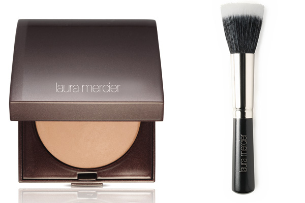 劳拉建议,可选择比自己肤色暗一色号的修容饼,搭配「魔力完妆刷」,柔和地加深脸部阴影部位,如颧骨下方、耳际至下巴的轮廓,以及鼻翼两侧和肩颈部凹陷区域。极度亲肤的烤饼质地设计,能刷出细致妆感,使肌肤呈现出如阳光亲吻过的肤色,散发出迷人光泽。此外,劳拉也建议搭配打亮修容饼,主要刷在欲强调的部位,如颧骨、眉骨、下巴、鼻梁、肩膀等,像施了魔法般的立即展现光泽,除了可校正暗沉部位外,亦可营造出高质感立体光感。