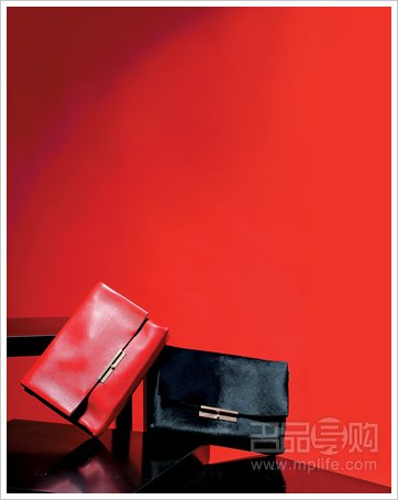 Blade红色皮革缀金属扣饰手袋 $24,000 Blade黑色马毛缀金属扣饰手袋 $29,500