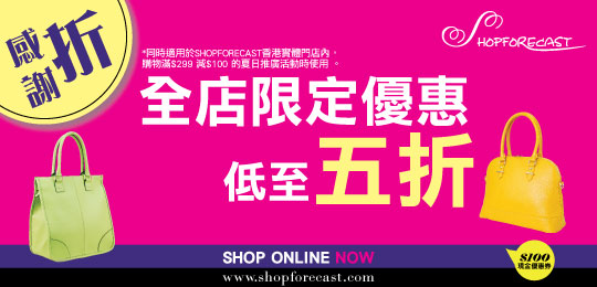 SHOPFORECAST概念店,配合充满欧洲艺术色彩的主题装潢,以楼上舖的形式为客人提供宽敞又舒适的空间亲身体验产品的特色。所有产品均与欧美加同步上市,现买满港币$500元即送礼品一份,送完即止。
