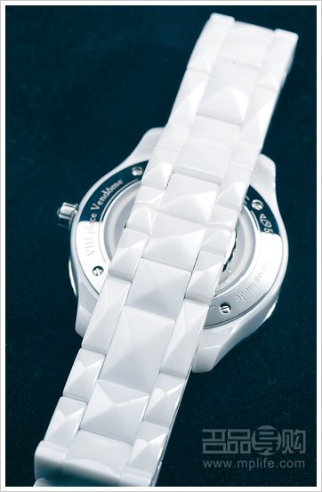 2013 年新版本 Dior VIII 焦点是在表背机芯上链陀位置,第一眼看还以为是一片贝母,原来品牌采用新开发半透明颜色焗漆(连侧面也涂上颜色),将精钢制造的上链陀幻化成贝母色调,效果奇佳。