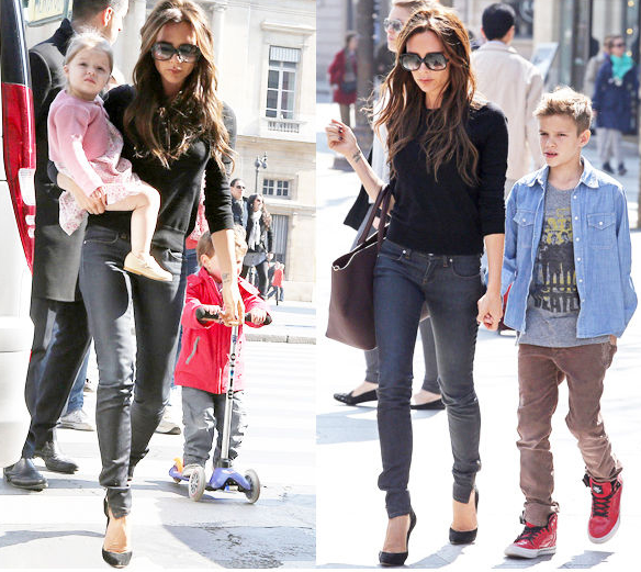 这双Manolo Blahnik经典尖头黑高跟真的是非常百搭。裙子、裤子、亮色、暗色……不论怎样配都如此得体。怪不得贝嫂冒着“只穿一双鞋”的风险,让MB频繁出镜。