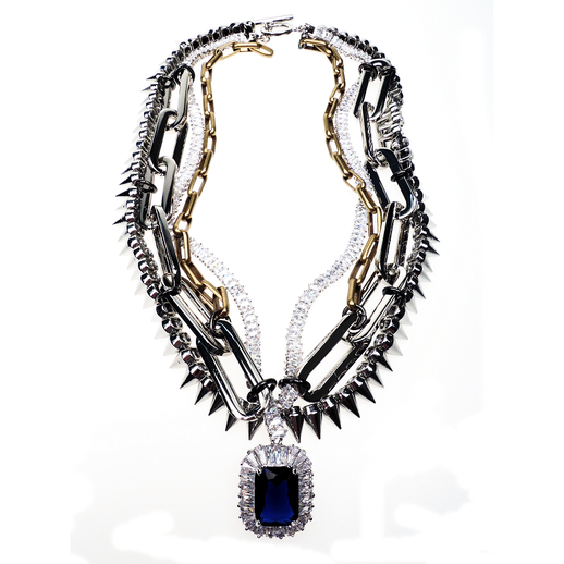 Venna 蓝色闪石吊饰拼窝钉颈链,售价待定