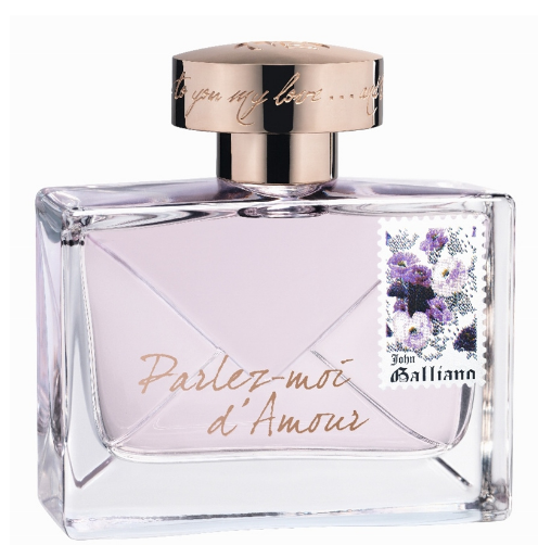 鬼才设计师John Galliano最新推出的Parlez–moi d’Amour Eau de Toilette女士香水,以情书為设计概念,清雅脱俗香气就有如浪漫的情话。以蓝莓、薑及佛手柑的甜美果香為初调,土耳其玫瑰、茉莉及薰衣草精油的芬芳花香作中调,而基调则是柏木的木质香气,為爱情故事注入浪漫色彩。