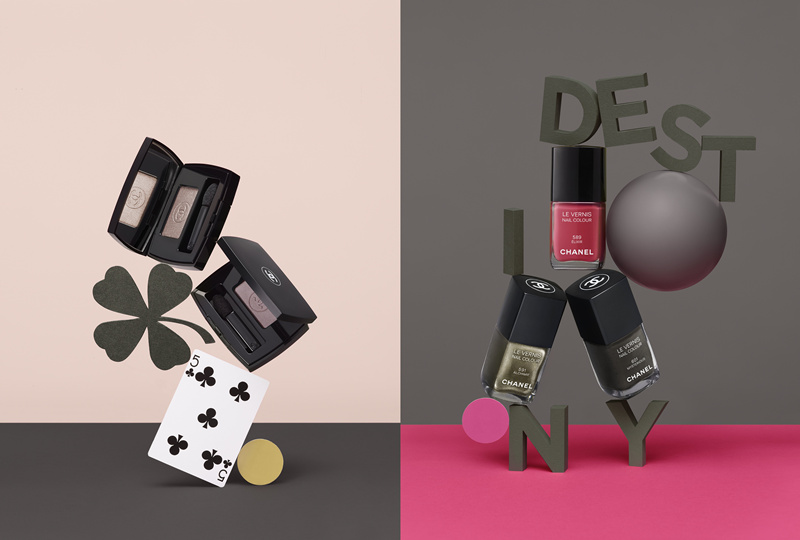 CHANEL秋季彩妆系列,以玩味十足及超现实的手法,重新演绎「迷信」的主题。首次推出胭脂霜,质感如丝绒般柔滑,加上唇膏以和谐色调配衬每款胭脂,展示「幸运配对」的主题。品牌同时推出三款新色甲油,深粉红色代表率真诱惑,还有具金属效果的卡其色和充满魅力的炭灰色调,以奢华色彩带你进入CHANEL天马行空的想像世界。