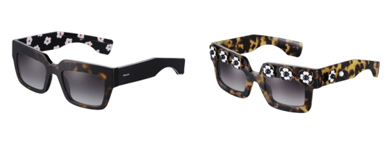 Prada本季的眼镜系列融合了简单及品味。简洁切割的线条为独特的Poeme系列眼镜带来了强烈但不失女性柔美的个性。黑白色对比的花朵是本季广告的主题形象,极厚的镜框搭配花朵装饰在镜架的正前方,每一朵皆为手工上色。系列亦推出平光眼镜的款式。在镜架外侧镶上不过份抢眼的花朵造型装饰并搭以四种不同配色,除了经典的黑色及象牙白,也有优雅的玳瑁色及有玳瑁色搭花朵印花的款式。