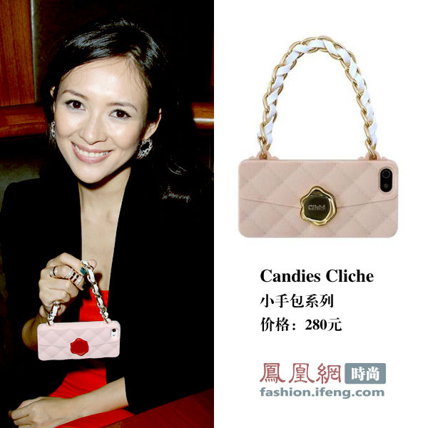 Candies Cliche 手机壳又来抢镜了!章子怡带着它去了美国,照相的时候还拎起来卖了个萌。