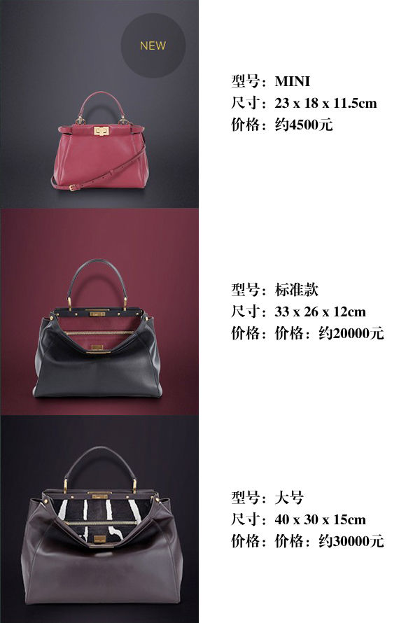 Fendi 的PEEKABOO系列包袋线条简单硬朗,颜色多变,适合OL女性日常选用。倪妮在微博上晒出品牌赠送的鳄鱼皮Mini,再次将PEEKABOO推向了关注热点。