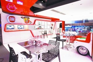 店内自然朴素的木质结构,搭配柔和的灯光,坐下来休息片刻便可整装待发继续血拼。餐厅与汽车陈列相结合,作为公认集美学及性能于一身的 Happy CarFiat 500(菲亚特500汽车)成为了店内主角。Fiat Caffè从名字就可以看出咖啡是最经典的,店内采用最著名的La Marzocco咖啡机来调制意大利 illy 咖啡。
