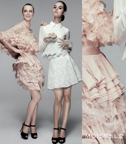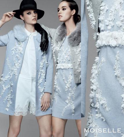 全新系列的MOISELLE,将俄罗斯的精髓移师一系列的设计之上,为女士塑造出新鲜回异的风格……唯一不变的却是,品牌一贯经典优雅中的时尚女性形象。今季的另一亮点是向传统致敬的怀旧元素─伞形裙摆、BB领、一字领、喇叭袖和幼细钉珠,剪裁上取直身和中高腰线,披上后恍如化身昔日的艳丽女星,于聚光灯下绽放瞩目神采。系列中的粉色和鲜色分庭抗礼,粉绿、淡灰、婴儿粉红和嫩黄,与亮蓝、橙、紫等各擅胜场,彷佛建构了一个色彩缤纷的梦幻缤纷衣櫉,将寒冷季节的传统沉郁调子一扫而空。