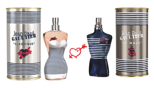 CLASSIQUE首次披上经典水手条纹,就像换上一件跟水手爱人相似的水手服,紧紧包裹着标志性的胴体瓶身。情侣装设计,加上两人胸前分别刺上鲜红色的心形纹身,简单的一句“in love”已宣示着两人爱的誓言。一如以往,LE MALE气味依然保留感性的阳刚味道,薰衣草香气和薄荷香调,加入温柔甜蜜的云呢拿香,散发更强烈的坚毅气息。 CLASSIQUE则保留橙花香调,揉合玫瑰、生姜及云呢拿,诱惑却又富时代感。