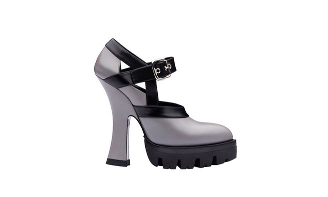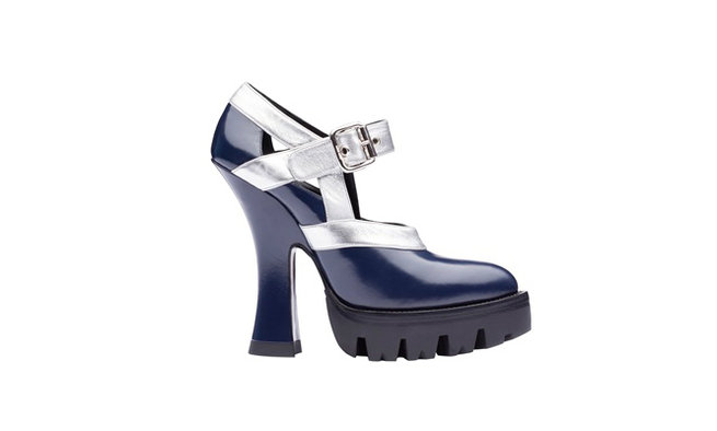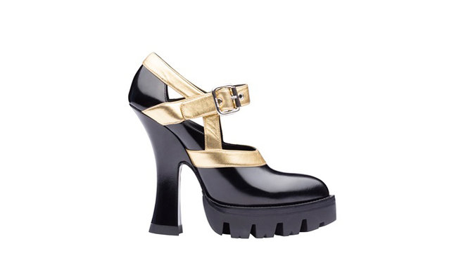 Miu Miu 2013秋冬系列的鞋款除了保留了品牌独有的甜美特质,亦增添了传统的复古气息。今季鞋款以粗跟和厚底鞋為主,缎面与皮革拼接的交错,以及配搭钮扣和啪钮,拼凑出亮眼的对比效果。