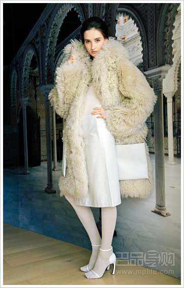 截裙、长裤等,外形轮廓以宽身为主,由于皮革的质感令整体不失立体感,呼应建筑美学主题。厚重的大衣是系列的亮点,数袭毛茸茸的 Shearling Coat,配以富 Volume 的外形剪裁,内衬贴身的上衣及皮裙,充满浓浓的冬日气氛,亦同时展现质感的强烈对比。