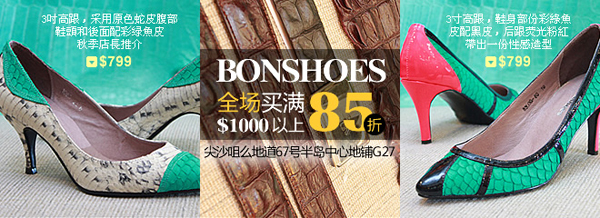 优惠活动:BONSHOES全场买满$1000以上85折优惠!