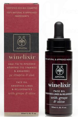 APIVITA 红酒抗皱紧致护肤油是有机认证的纯天然面部修护按摩油,蕴含白藜芦醇(Resveratrol)及丰富的有机植物油(葡萄籽、橄榄叶、太阳花籽及杏仁),为肌肤灌注水分与养分,提升皮脂层的健康。配合按摩能有助促进血液循环及胶原蛋白的增生、提升肌肤紧致度,预防提早衰老。