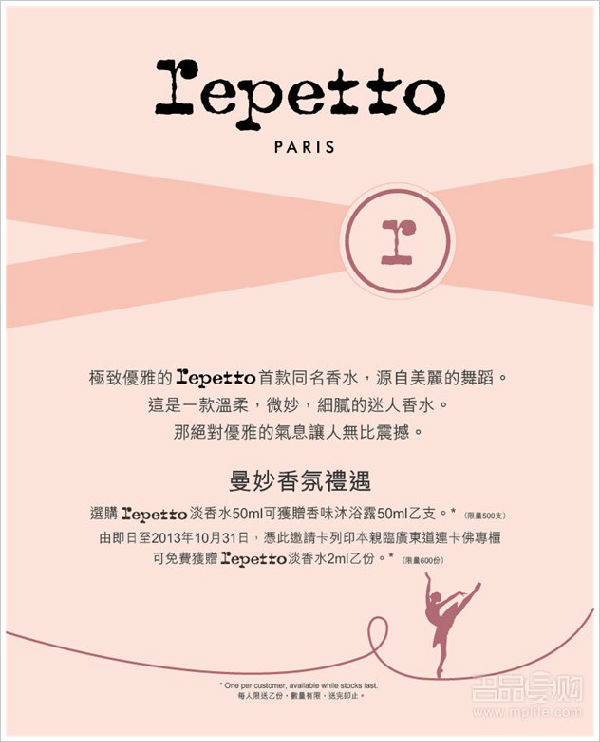 Repetto首款香水 优先体验芭蕾之香 (至13年10月31日)