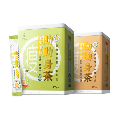 为调节都市人失衡的饮食习惯和配合忙碌的生活节奏,助助身茶的速瘦冲粉具乌龙及绿茶两种口味,以崭新「超频冷提取」技术,萃取顶级乌龙、绿茶、紫苏、荷叶、茶花精华等,促进代谢循环及去除水肿,燃脂消滞。同时具抗氧化和排毒功能,当身体中的毒素减少,肌肤自然变得健康幼嫩。