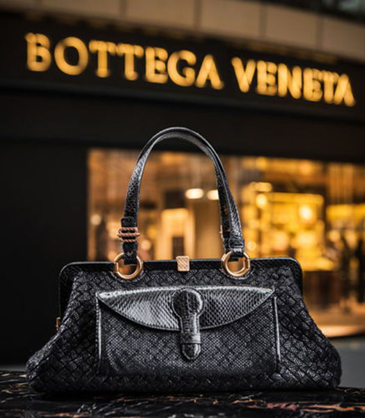 黑色编织禾草混羊毛缀水蛇皮手挽袋(港币40,700元)