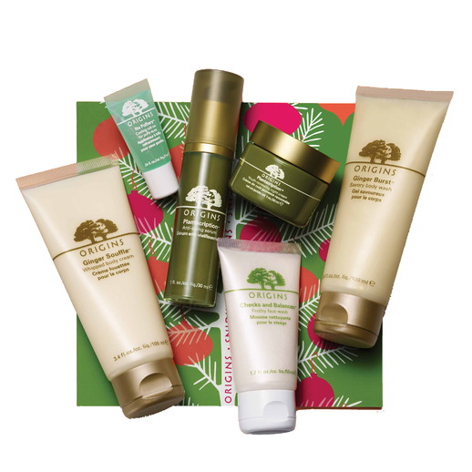 ORIGINS 在这佳节中,特别呈献一系列窝心紓压的礼品套装。当中 ORIGINS Greats 皇牌高效面部及身体护理套装,包括 Plantscription™悦肌再生精华及面霜,配合 No Puffery™去浮肿亮眼按摩笔及 Checks & Balances 衡肤泡抹洁面霜,為面部及眼部肌肤提供周全的抗衰老护理;配合贴心的冬日身体护理精选-薑根沐浴露及润体霜,揉合了柠檬、青柠及佛手柑的清幽果香;洋溢着温暖、幸福气息。為娇嫩的身体肌肤提供最体贴、滋润的保护,无惧冬日寒冷乾燥,让暖意瀰漫整个冬日。