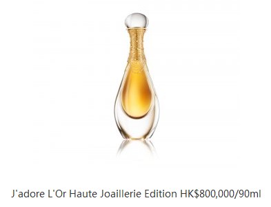J'adore L'Or Prestige Edition HK$68,000/30ml (内有2瓶15ml替换装,须自行注入)