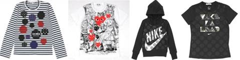 波点上衣 $1299、图案Tee $1000、hoody$1699、黑色Tee$1199