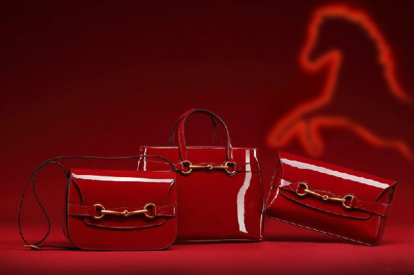 Gucci为马年推出特别系列,包括Bright Bit手提包,小巧肩背包和手拿包,亮漆皮材质采用了中国人春节最传统的大红配色。虽然没有出现马的形象,但品牌著名的设计标识之一马衔扣已经足以代表马年的主题,而作为为中国限量制作的包款,包的内侧特别镶有一块印有“CHINA EXCLUSIVE”(中国限量)的铜质铭牌,并饰有代表中国的红五星。