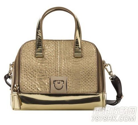 宝石版的经典拱形手袋:体积小巧精致,金黄色的蜥蜴皮纹翻盖配衬镜面金属皮革装饰,有如一颗极致闪烁的小宝石,可爱得让人屏住呼吸。