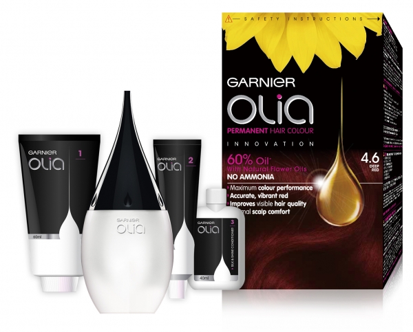 Garnier 以专利「油导技术」设计Olia 染发霜(HK$79),同样不含阿摩尼亚,透过水油相斥的特性令色泽温和地注入发丝中心,当中蕴260%滋养油及4 种天然花油,令发色闪耀度得以提升17%。