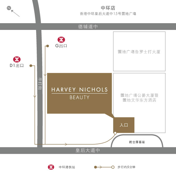 楼高五层,中环置地广塲Harvey Nichols推陈出新,国际一线品牌,如香奈儿(Chanel)丶迪奥(Dior)丶雅诗兰黛(Estée Lauder)、兰蔻(Lancôme)等都尽在中环置地广塲Harvey Nichols。我们致力为您带来独家品牌,高级货品及上盛服务。