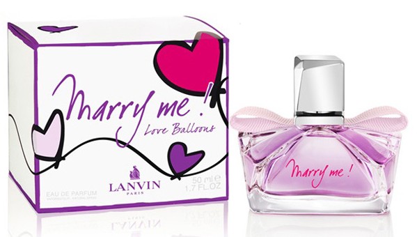LANVIN「Marry me甜心限量淡香精」瓶身设计更贴近 LANVIN 梦幻蝴蝶结的细腻设计,晶亮的粉紫色光晕诠释充满新婚的确切幸福,透银色瓶盖及粉红色丝带,牵系着一生的美好,宛若步入礼堂的新娘捧花那样的兴奋期待着,外盒上则手绘上宣告真爱的粉恋色彩气球亲笔手迹,玻璃瓶身上的桃红色「Marry me !」手写字样,是设计总监Alber Elbaz献给新人们最美好的祝福烙印。