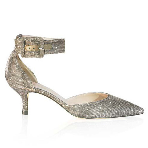 完美的尖鞋头加上中等高度的鞋跟,细节上在脚踝处配有闪亮搭扣,勾勒出双脚完美的线条。2014 年春季,这样一双金属闪光质地单鞋可以说是必备品。无论是搭配男友风格的牛仔裤或是日常休闲的慵懒针织衫,就连鸡尾酒会礼服这款鞋也能够搭配。在2014 年春夏季的推广单品中,这款单鞋是季前必须有的单品。