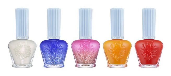 限量版亮彩指甲油,绽放五种漂亮色调,既可层层迭加,又可大玩 mix and match,让两款柔和粉红、清雅湛蓝、阳光橙黄与耀眼朱红互相配衬,让指尖弥漫春日气息。($160)
