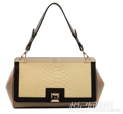 Furla 经典设计抹上粉亮色彩,脱胎换骨成为全新两点,并选用蛇纹小 牛皮配衬其他皮革及柔软的nappa皮革缝制,尽显初春轻盈靓丽之美。