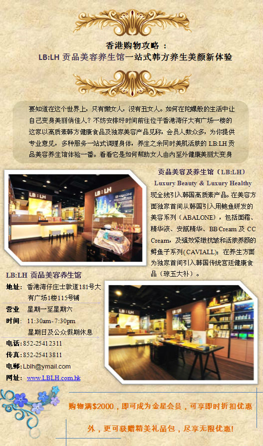 香港购物攻略:LB:LH贡品美容养生馆一站式韩方养颜新体验