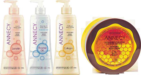 此外,全新登场的透明质酸焕肤身体修护系列($32.9/400ml)共有三款不同成分,法国胶原蛋白润肤乳有助提升肌肤弹性;澳洲羊脂润肤乳有效於肌肤上形成锁水膜,而西班牙玫瑰果油润肤乳则能修护肌肤瑕疵,改善肌肤乾旱脱皮问题。电话:2299 3381(万寧)