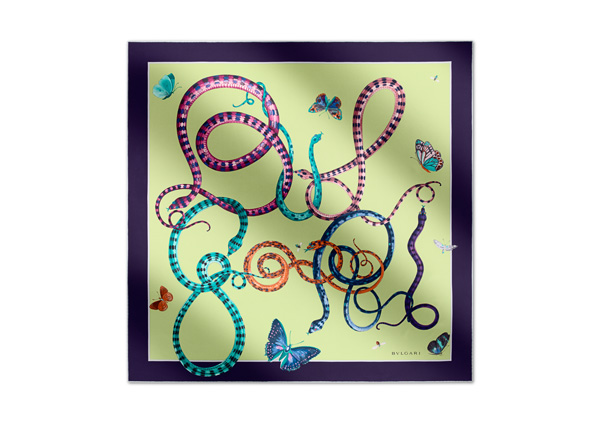BVLGARI宝格丽迷人的旅行配饰精美出众,软薄丝巾上展现着或抽象或别具异域风情的图案。几何图案与漩涡的融合为色彩缤纷的万花筒赋予活力,引人遐想。棕榈树、蛇图腾等梦幻般的场景使每一件单品都流露出不可抵挡的诱人魅力。