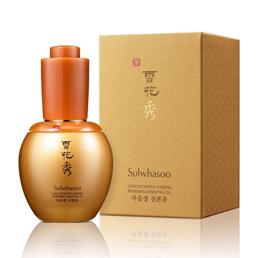 Sulwhasoo Concentrated Ginseng Renewing Essential Oil 蕴含人参籽油、山茶花油及芝麻油,与肤质极為接近,能迅速被吸收,从肌底开始回复自我更生保护活力,强化肌肤防御系统。人参籽油成分能促进活肤更生,有效延缓衰老;具卓越抗氧化效能的山茶花油成分能缔造亮泽清澈的肤色,提升肌肤光泽感。滋润度极高的滋阴生真本油能瞬间恢复缺水肌肤的活力与光采,重建肌肤天然脂质屏障,使肌肤持久柔软润泽、紧致细嫩。特别加入多种天然草本香薰,有助释放及紓缓压力,镇静身心洗涤心灵。