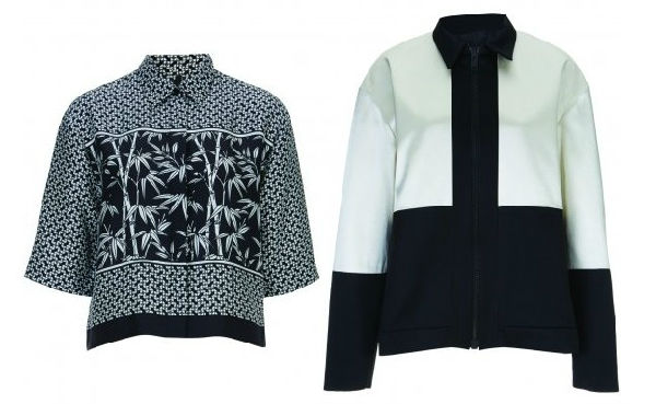 竹叶印花图案正方外形衬衫$1499,绸缎上衣 $1,219