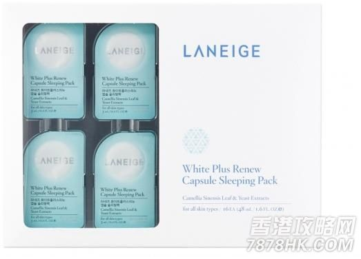 White Plus Renew Capsule Sleeping Pack 雪漾亮白睡眠面膜(HK$280/16盒)采用一盒盒的独立包装,每盒含有25% 浮动美白乳霜及75% 补湿凝胶,这1:3 的比例能令面膜达至水润、亮肤却不油腻的效果,于睡眠其间为你美白肌肤。