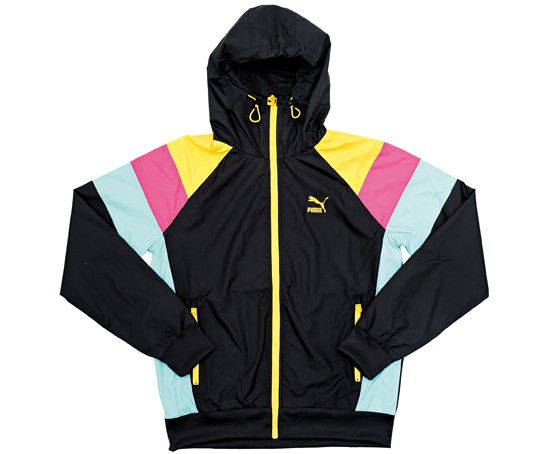 PUMA为2014春夏季带来充满色彩的服饰系列,以几何图案为女生打造韩国街头造型,最基本的黑、白二色来衬托桃红x紫或彩蓝x紫两组色系,备有背心、短身外套,风衣以及LEGGING,当中以LEGGING的图案最为突出,适合单色的上衣作搭配。另外,女生可选择印有热带花卉TROPICAL图案的风衣,春季时寒时暖,外出必备搭配单品。男生外套则以色彩方块为主,颜色方面可选择沈实的黑色或富有80年代运动风的紫色,上衣方面则可选择带点民族风,由几何图案砌成的PUMA LOGO TEE。