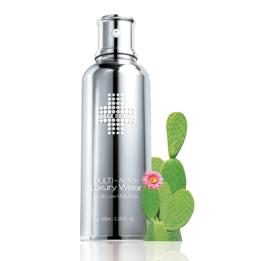Suisse Reborn 的 Multi-Action Luxury Water 3 秒魔法能量水,以沙漠玉芙蓉精华,结合高浓度锁水因子极速渗透至真皮层。有效於肌肤表面建立锁水膜、防止水分和养分流失,加强肌肤储水力量,并增强吸收水分及矿物的能力。另外蕴含海藻、维生素 A 和 C 等成份,有助增强肌肤对外界刺激的防御力,配合氨基酸的抗老和细胞修护效果,提升肌肤紧致度并重现活力及光泽。达到紧緻、淡纹、水嫩、弹滑、亮肌的 5 大再生效果。
