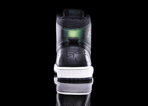多媒体艺术家克雷格•斯泰齐克(Craig Stecyk)在鞋款的设计中引入了他标志性的部落风格。他从自己的艺术装置作品“Northwest Passage”中汲取灵感,这一装置作品主要由青铜铸件和喷漆打造。绿黑配色的鞋面上印有由 Craig Stecyk 设计的“AJ One SB”文字,该字体最早出现在 1982 年的一本滑板杂志中,相同的印字也出现在Nike SB x Air Jordan 1 的鞋垫上。